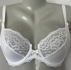 Бюстгальтер с формованной чашкой на каркасах, декорированной кружевом. Фестоны кружева нежно обрамляют грудь. Бретели сзади отсоединяются, что дает дополнительную возможность использовать бюстгальтер под одежду с изысканным кроем.