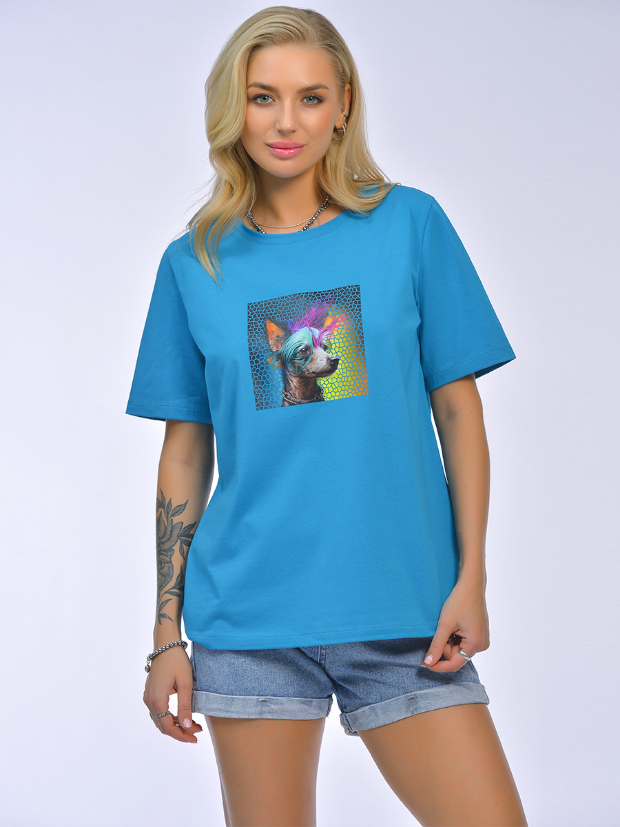 Фуфайка женская с круглым вырезом и коротким рукавом. Изделие полуприлегающего силуэта будет не заменимо на отдыхе, в быту и для занятий спортом.