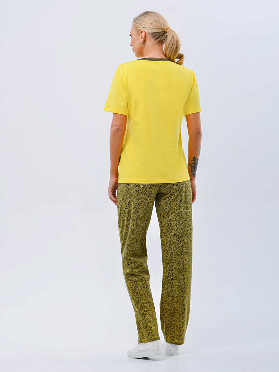 Яркий молодежный домашний костюм, созданный для комфорта и стиля в повседневной жизни. Изготовлен из высококачественной ткани хлопок с добавлением эластана, это обеспечивает отличную посадку и свободу движений. Футболка имеет удобную горловину, выполненную из рибаны, и украшена ярким стойким принтом на полочке, который радует глаз и подчеркивает индивидуальность. Брюки прямого кроя изготовлены из набивного трикотажного полотна с мягкой тесьмой на талии, что обеспечивает дополнительный комфорт при носке.