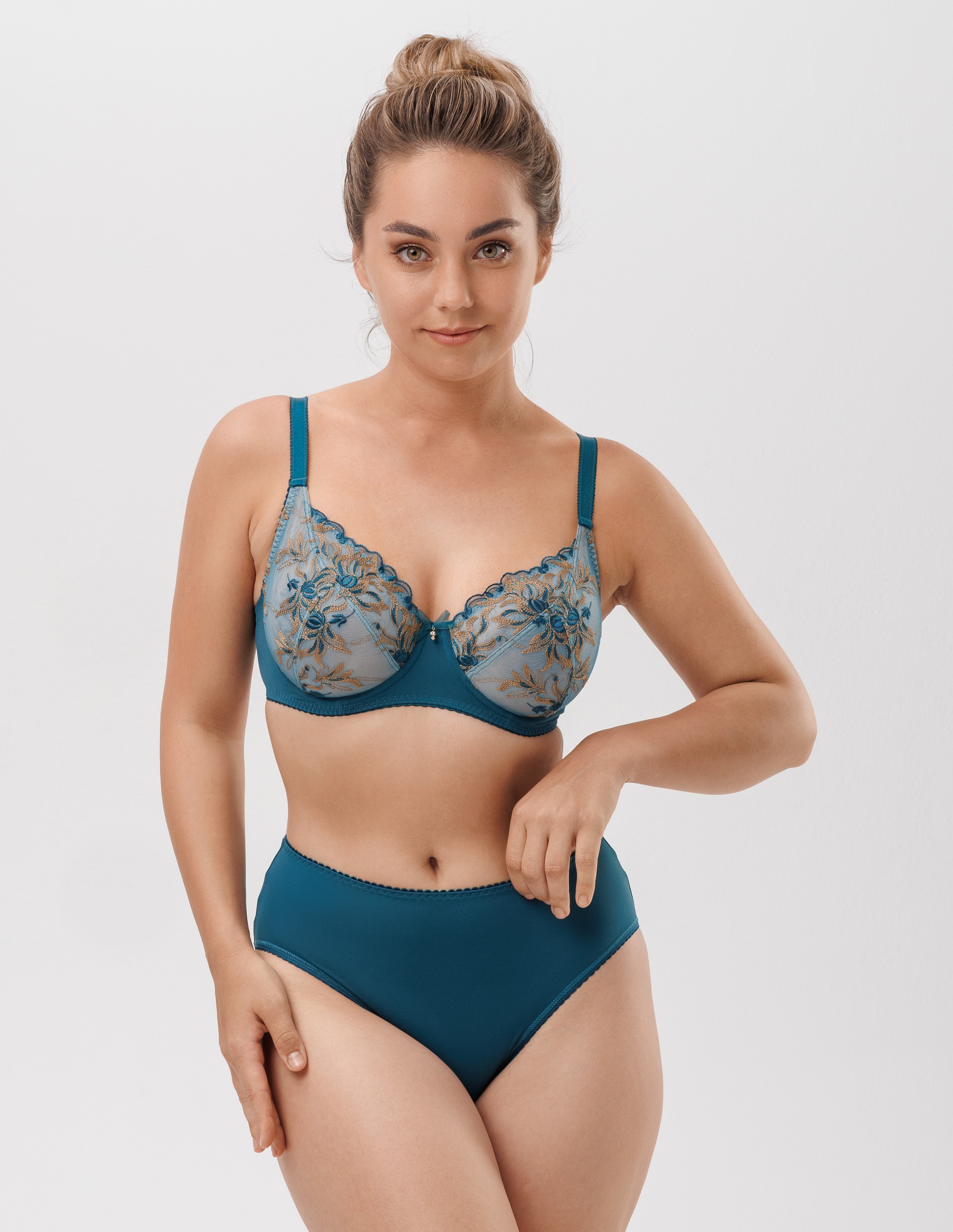 Бюстгальтер с мягкими чашками на каркасах, из неэластичного трикотажного полотна. Чашки из трех частей с диагональным швом. Нижняя и боковая части на х/б хорошо поддерживают грудь.