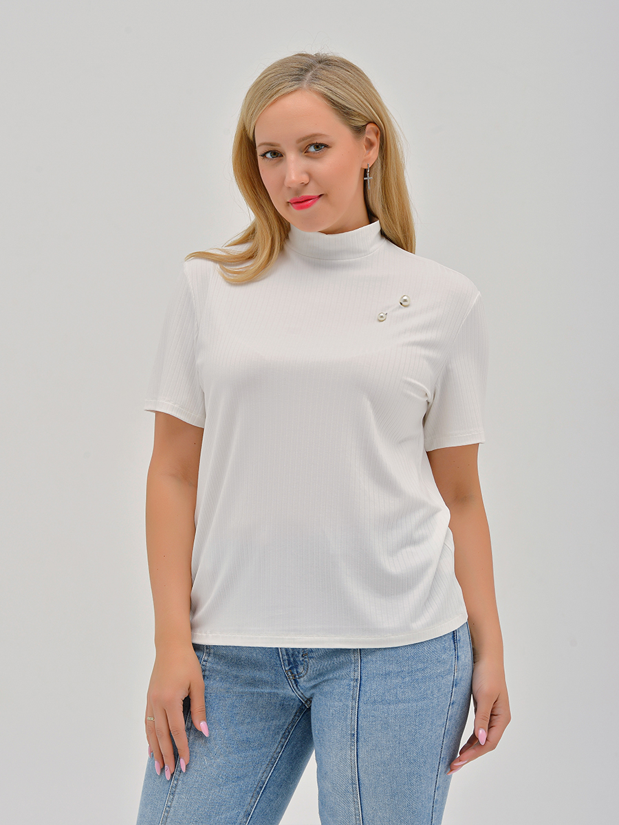 Фуфайка женская с круглым вырезом и коротким рукавом. Изделие полуприлегающего силуэта будет не заменимо на отдыхе, в быту и для занятий спортом.